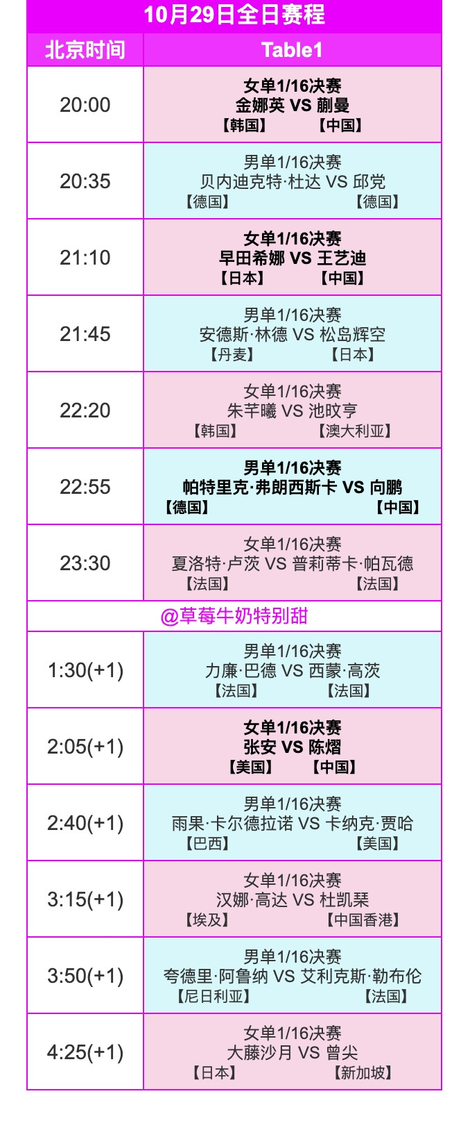 另外附上今天赛程安排:
